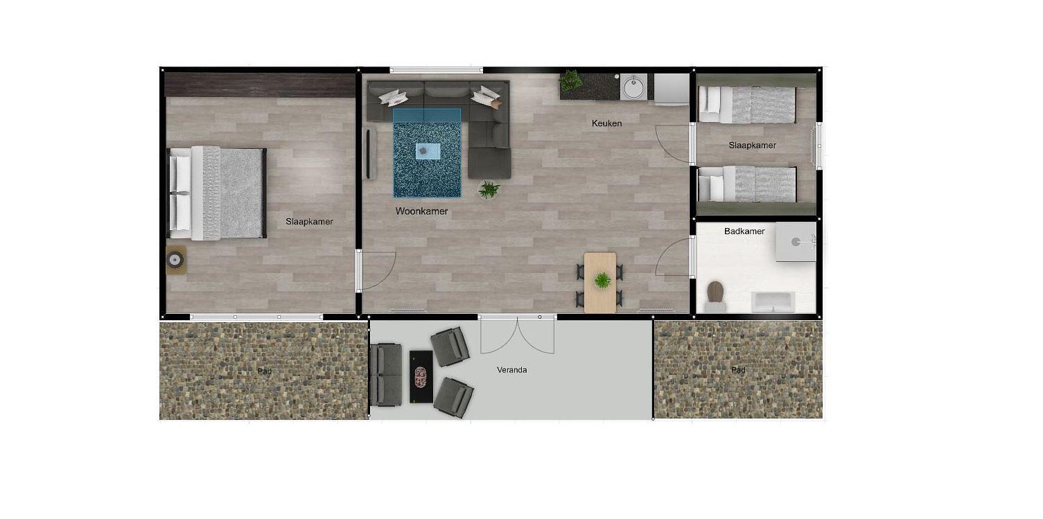 Binnen geniet je van een moderne, warme afwerking: een eigentijdse keuken, een luxe badkamer met toilet en een sfeervolle woonkamer met karakteristieke schuine plafonds. De dubbele openslaande tuindeuren verbinden de woonkamer naadloos met de overdekte veranda en de groene tuin rondom. Of je nu zoekt naar een romantisch tweede huis voor ontspannen weekenden, of een investering in rust en natuur, hier voel je je direct thuis. De woning is volledig instapklaar en met veel zorg ingericht, en je beschikt over een eigen parkeerplaats op je perceel.