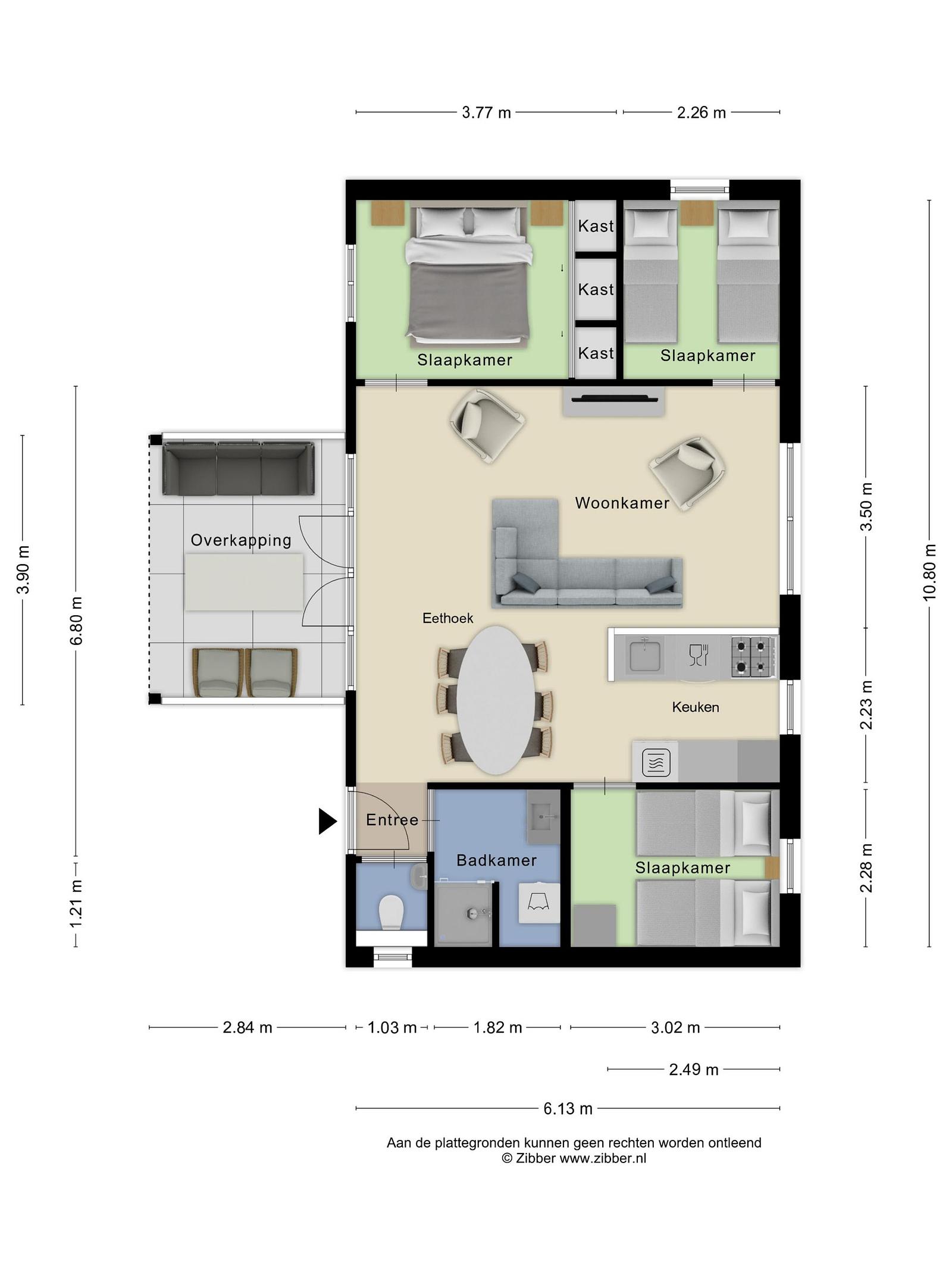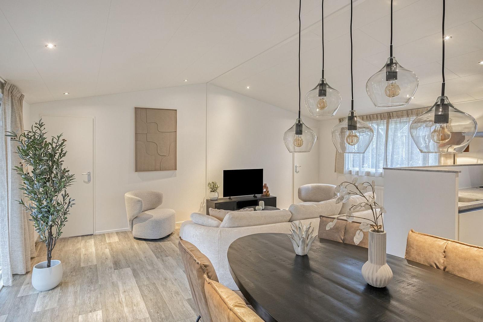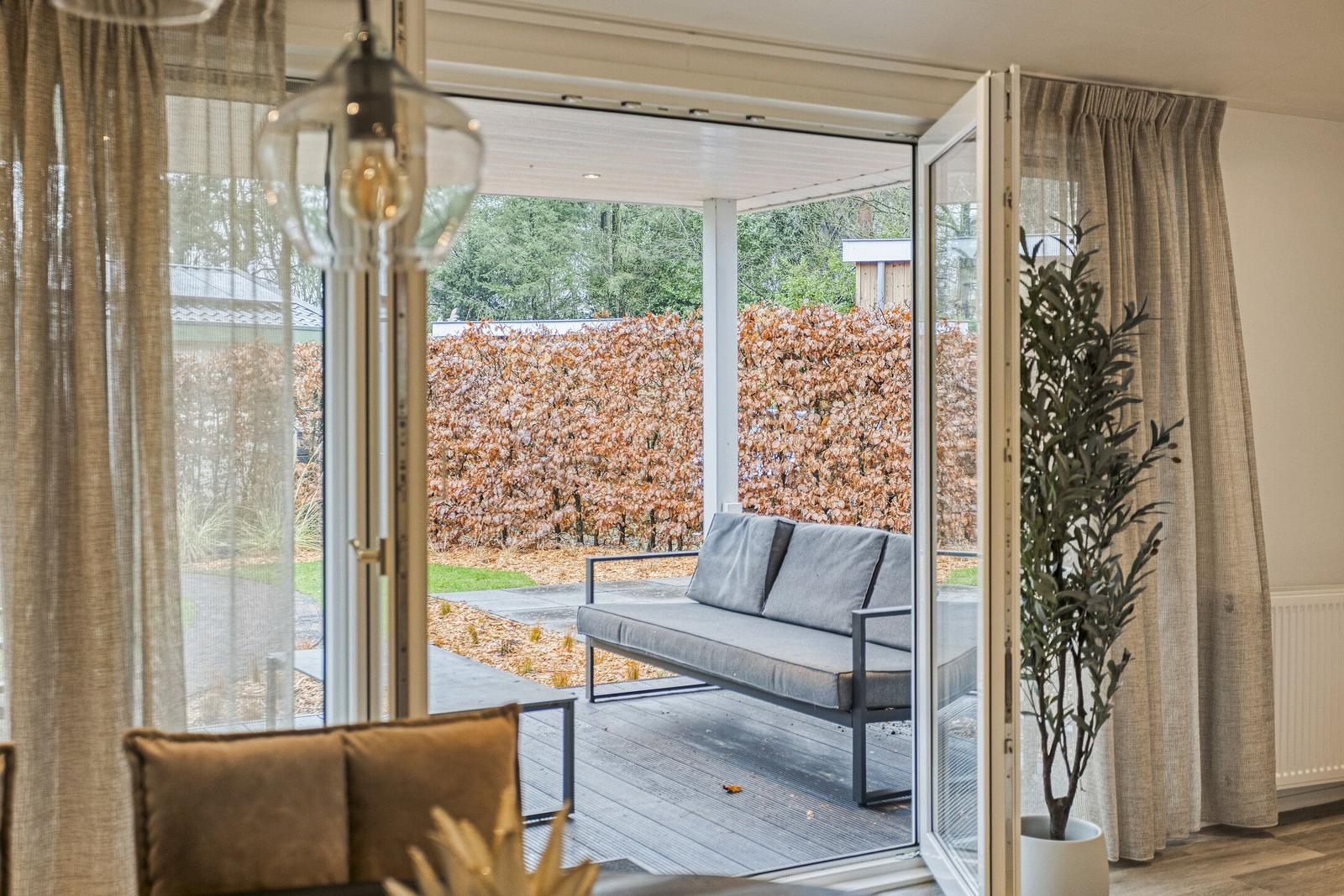 Met een woonoppervlakte van circa 70 m², drie slaapkamers en een lichte, open leefruimte is dit een comfortabele plek om te ontspannen en tot rust te komen. Binnen en buiten lopen mooi in elkaar over dankzij de openslaande deuren naar de overdekte veranda en de privacyrijke tuin.